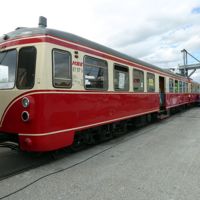 A railcar from the former Cologne-Bonn Railway (KBE) in Niehl Harbour (Cologne). (August 2025) (Foto: © Rüdiger Benninghaus) #Eisenbahn, #railway, #Köln_Bonner_Eisenbahn, #Niehler_Hafen