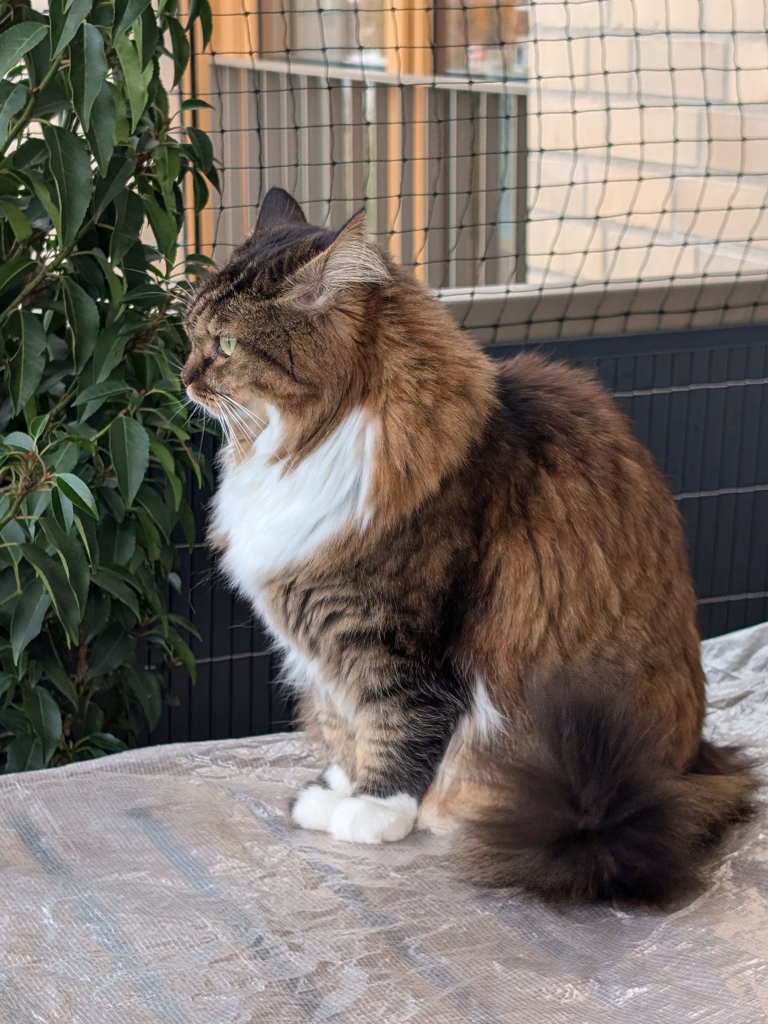 Cookie checking whether the outside is still there. She looks quite chonky but that's just her fluffed up winter coat. #cat #katze #gato #chat #neko
