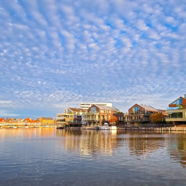 #Leer under a 'sheep-y' #sky. (I took this picture today and it has immediately become one of my favourite photos of Leer 🥰) #EastFrisia #water #harbour #skyline #skyporn #AutumnLight