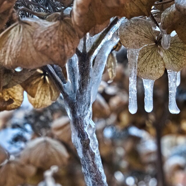The #hydrangea is wearing an icy #winter coat. #ice #January #plant #nature #icicles