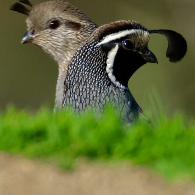Dual portrait of California Quail. The male has the more elaborate plume, presumably to pick up radio transmissions from the Quail Planet. #nature #photo #photography #birds #birders #birdwatchers #birding #California #birdphoto #birdwatching #GriffithPark #DailyBird #BirdsOfPixelfed #BirdsOfMastodon #quail #naturephotos #LAWildlife