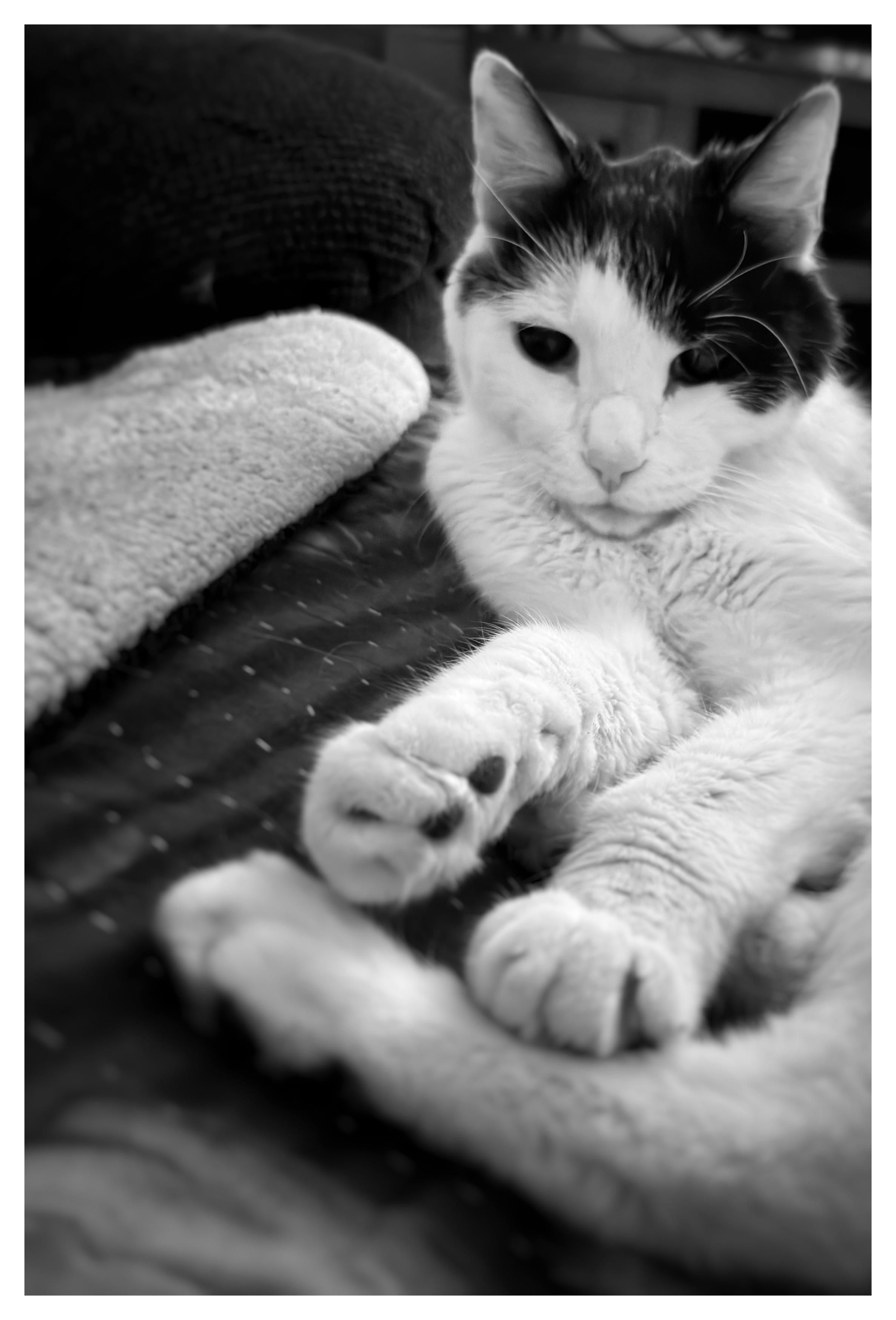 #Caturday This is my neighbor Merlin, whom I look after sometimes, getting ready to let me know that he’s had enough petting. At 19 years old, he’s entitled to be as grumpy as he wants. #photography #monochrome #blackandwhite #cats #catsofmastodon
