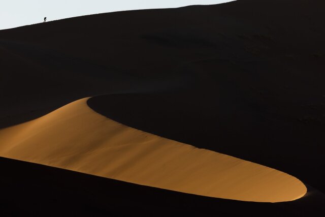 Alone; climbing a huge dune...In deadvlei, Namibia. What a huge effort ! How I took this photo ? Canon R3 EF500mm f4 1/1000e f9 Iso 400 Manual Raw natural light Not IA #photography #photo #dune #sanddunes #namibia #landscape #landschaft #paysage #nature #natur #natura #magicishere #ourbeautifulworld #africa #digitalart #pixelfed #art #deadvlei #canon #canonphotography #canonphoto #travel #traveler
