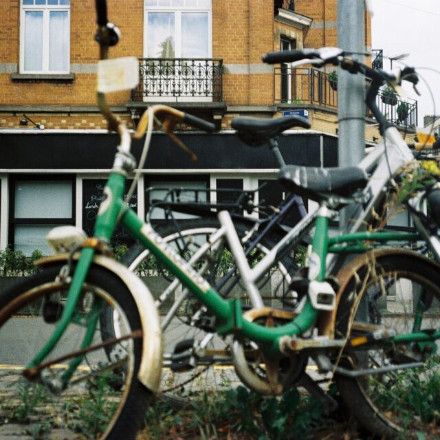 Rusty bikes. 28/37. Brussels. July 2025 #filmphotography #colorfilm #lomography400 #minoltahimatic #pointandshoot #streetphotography At one time, you parked an old bike, maybe without realizing that you would never ride it again.