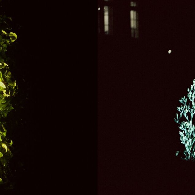 Bush and weed by night. 📸Minolta Hi-Matic GF 🎞️Cinestill 800 tungsten Collage of two - #nightphotography #filmphotography #pointandshoot #plants