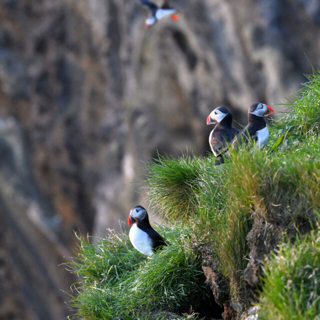 More puffins, anyone? I caught one in flight here. Puffins are not graceful fliers. They launch, it seems, using sheer determination. Imagine a penguin flapping so hard and so fast that it lifts off. Something like that. Puffins may be cute, but they have grit. #photography #Iceland #bird #puffin