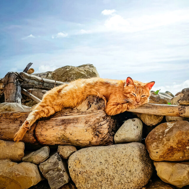 Catnap 💤 for #caturday One of my favourite kitty photos. A little fluffy marmalade feeling a little eepy on a wall in Alghero. #photography #amateurphotography #caturday #catsofpixelfed #cats #orangecat #tabbycat #sleep #nature #sky #rocks #wall #sardegna #sardinia #italy #cute #spring #relax #blue #orange #travel #fluffy #sun #sunnyday #italia
