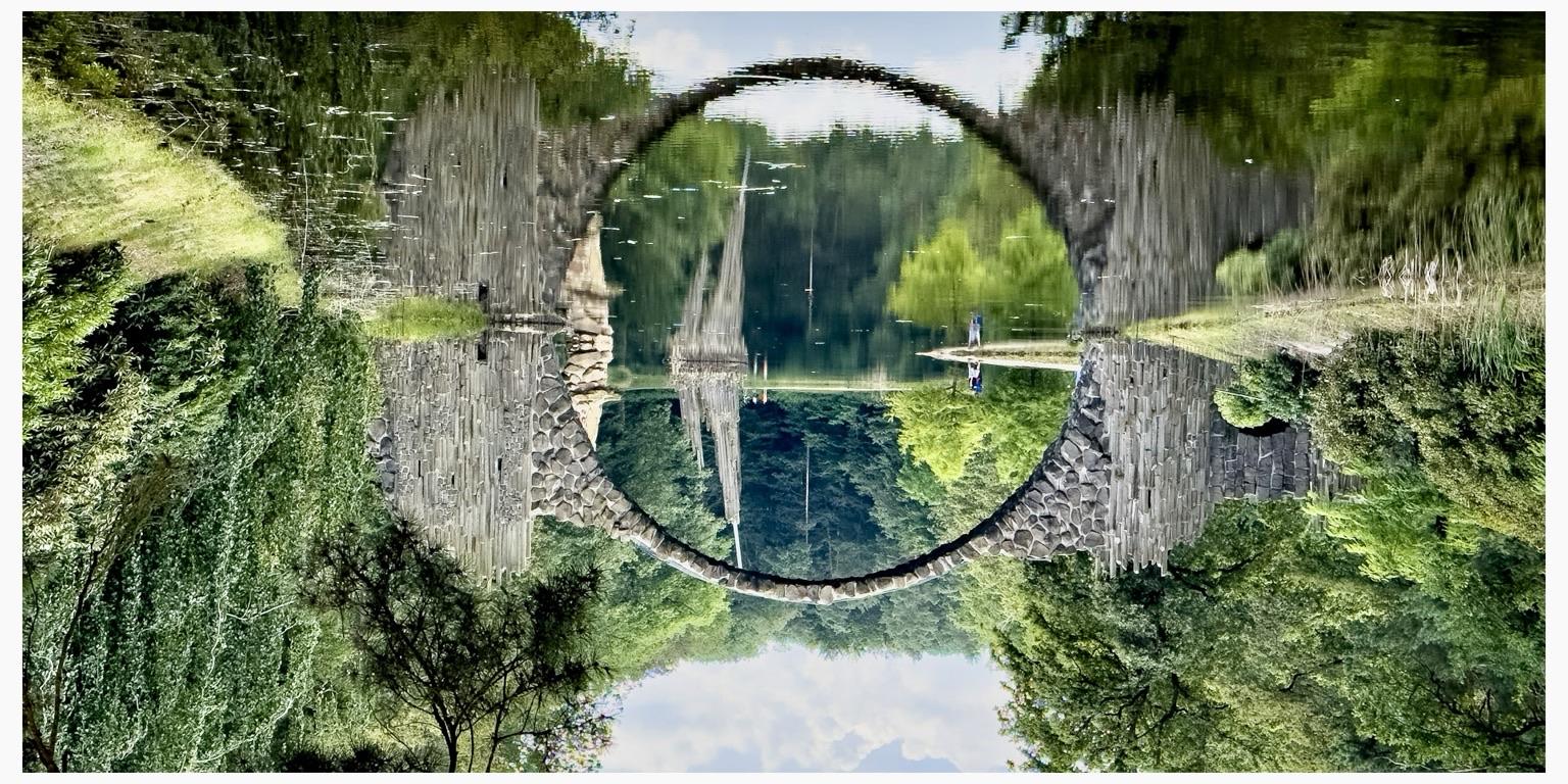 Beim #FotoVorschlag 'trhekreV (Verkehrt)' geht es wahrscheinlich nicht unbedingt um auf dem Kopf stehende Fotos, aber ich bin zu begeistert wie die Rakotzbrücke mit ihrer einmaligen Ringspiegelung das Auge austricksen kann. #fotografie #landscape #nature #architecture #photography