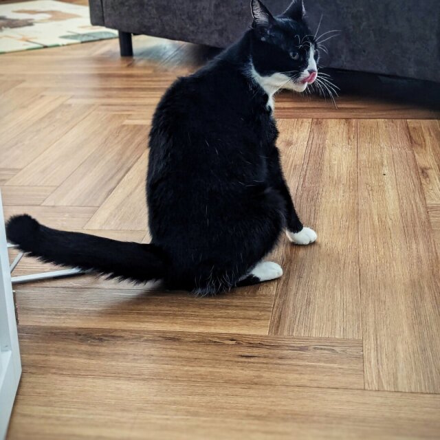 Captured a cute little #mlem from Baghira for #TongueOutTuesday and early #WhiskersWednesday #Caturday #tuxedoCat #cat #CatsOfPixelfed #CatsOfMastodon #CatsOfFediverse #PixelCats #Katze #Katzen #KatzenContent #cats #TuxedoTuesday