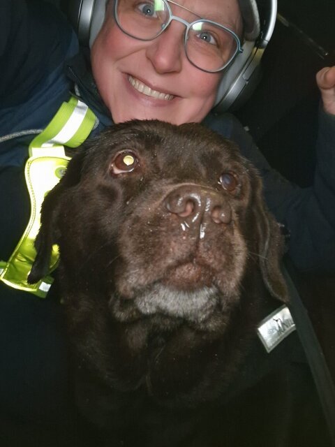 Once upon a night, it was very, very wet.. Trying to get a selfie with my big love in the pouring rain, trying to keep my headphones and light dry under the umbrella, while Arwen is more interested in the cookie reward than in getting a decent shot today... Ah well, we tried... π πΈ 26/02/2025 #Labrador #DogsOfMastodon #Dog #DogsOfPixelfed #Labradorable #Dogs #PixelfedDogs #Selfie #EyeContact