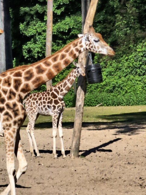 The little one was eating at the lower bucket and then the bigger one walked into the snap... 🦒 📸 09/05/2025 #BurgersZoo #Zoo #Giraffe