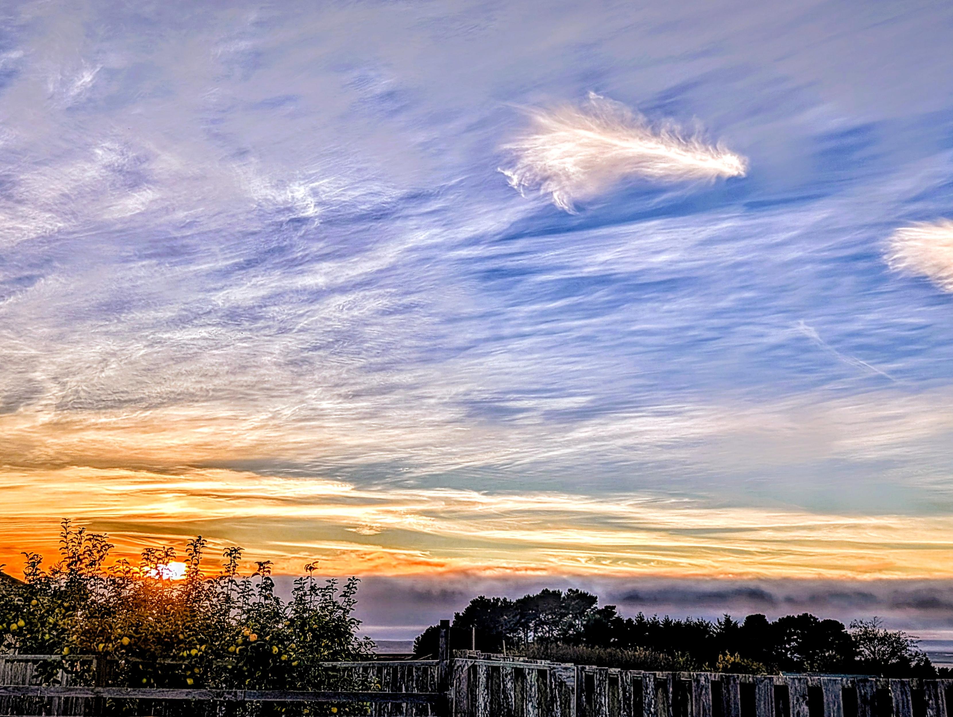 After at least twenty five years of going to the same stylist I asked someone new to cut my hair. I know the loss of my monthly haircut isn't much for a MAGA business but it is something and a whole lot of somethings will add up. It turned out my new stylist and I had gone to school together but hadn't met as kids. What a trip down memory lane! She knows the whereabouts of everyone I'd forgotten in the last fifty years. Small town stuff. I have shorter hair and a new friend. It was a lovely visit and I came home feeling so much lighter. I was just in time to watch the late afternoon sky with Summer. The clouds drifting by like giant feathers. Our day started a little iffy but is closing out on a high note.