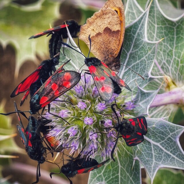 Thistle Party. #moth #moths #butterfly #butterflies #thistle #wildflowers #insects #pollinators #nature #naturephotography #wildlifephotography #macrophotography #smartphonephotography #photography