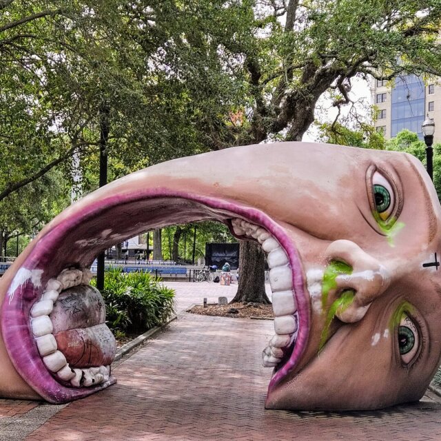 #UrbanExploration #CityParks #Art #StreetArt #Sculptures πŸ“ "MOSH Mouth," by Luca Berton and Michael Turner, James Weldon Johnson Park (formerly Hemming Plaza Park), downtown Jacksonville, Florida πŸ‘‰ MOSH Mouth was originally created for β€œThe Body Within” exhibit at the Museum of Science and History. The 18.5-foot long by 8-foot wide mouth fiberglass sculpture has been one of the most photographed spots in the park. πŸ‘‰ MOSH Mouth has since moved to the residence of a private collector in the Riverside neighborhood, Jacksonville, Florida