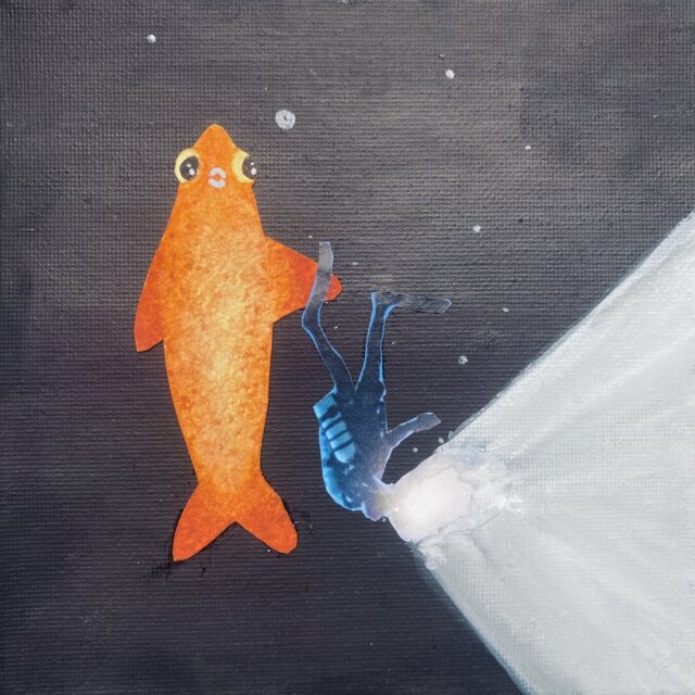 Got light ? Watercolor, ink and collage on canvas #fish #humaning