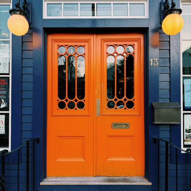 The orange double doors of the Oyster Club in Mystic, CT. I've always thought that blue and orange gave some strong autumn vibes. #MysticConnecticut #MysticCT #Connecticut #ConnecticutPhotography #travels #travelphotography #travelphotos #ShotoniPhone #Photodaily #Photography #Pixelfed #Wednesday #doors #doorsday #streetphotography #streetphotos #urbanexploration #orange #texture #accidentallywesanderson #wesandersonstyle