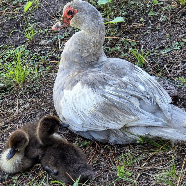 Oh, no ... different family .... this is an earlier clutch, started with six ducklings, now just two ... the golden ones stick very close by with their mama and siblings ... all 5 are doing well ...