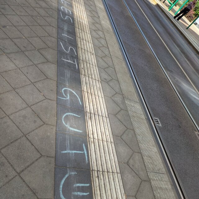 #FotoVorschlag: Schräg (Dutch Angle) // Dutch angle "Alles ist gut" in #Magdeburg Buckau // "Everything is fine" in Magdeburg #Buckau #MVB #Straßenbahn #Schienen #tramTracks #tram #graffiti