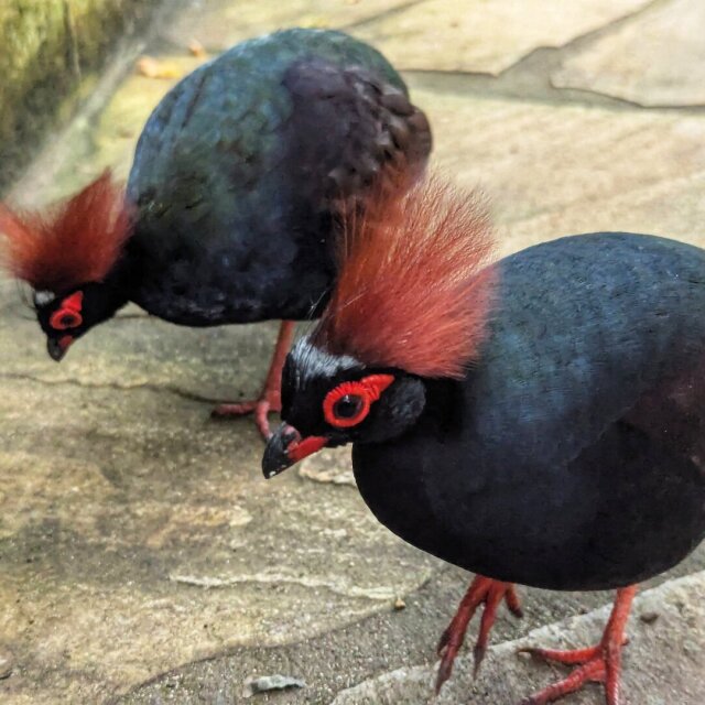 I think these #crestedPartridges are dressing up as mad scientists for tomorrow 🎃 #crestedWoodPartridge #roulRoul #redCrownedWoodPartridge #greenWoodQuail #greenWoodPartridge #crestedPartridge #partridge #quail #partridges #quails #Wachtel #Wachteln #Straußwachtel #RollulusRouloul #GrusonGewächshäuser #bird #birds #Vogel #birdPhotography #birdsOfMastodon #birdsOfFediverse #Birdsday #Birbsday