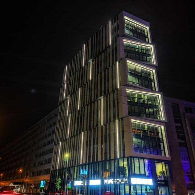 Last month, I discovered a new building (well, new to me, though it was only finished this year) in #Magdeburg's city centre, so I'm posting it for #FensterFreitag. It's the new office of the #MWG housing co-op. I rarely appreciate modern buildings, but this one looked interesting – and quite unexpected in good old Magdeburg. #WindowFriday #urban #cityscape #streetPhotography #architecture #Architektur #nightPhotography #cityAtNight #BreiterWeg
