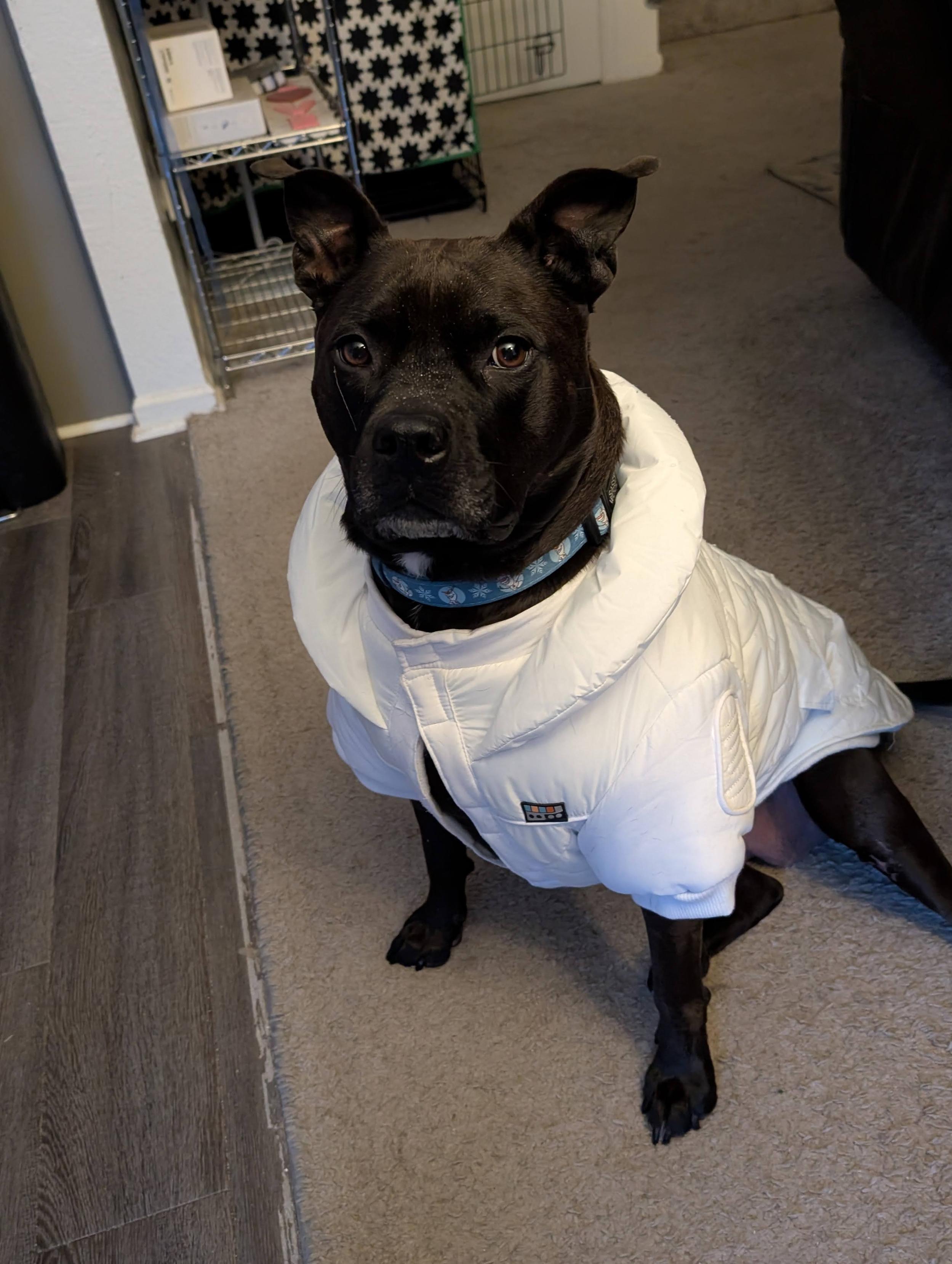 Good Morning Mastodon! Had the first real snow. Pepper was playing out in her Princess Leia coat when I got home last night. #dogs #dogsofmastodon #pibblesofmastodon