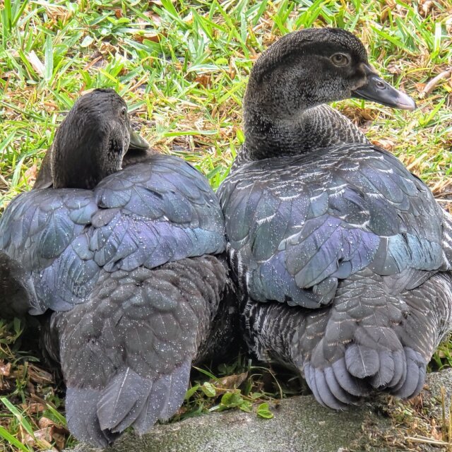 🐤🐤 handsome Donnie Duckateer & beautiful Marie Duckateer on their 82nd day 🎉 📸 4 photos - especially fond of the ones where Donnie was "wagging his tail" 🫠🥰 #Ducks #MuscovyDucks #DuckTuesday #Birds #Wildlife