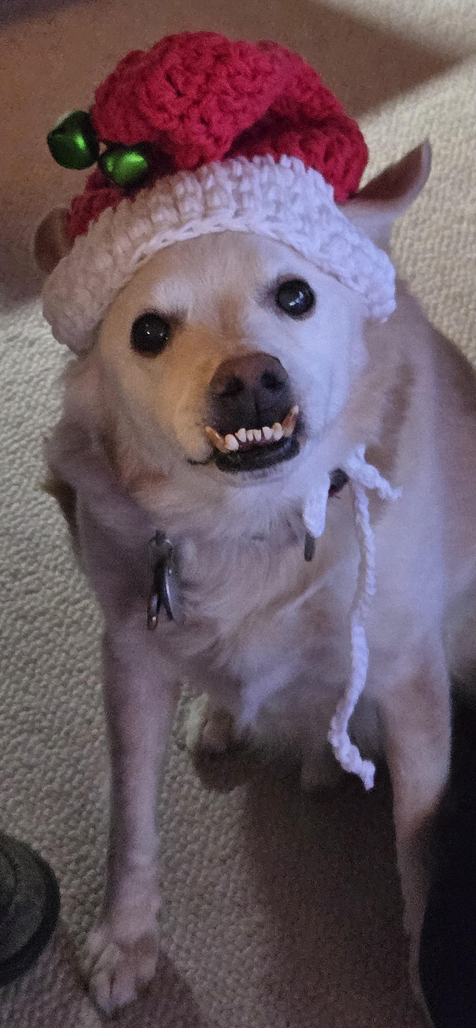 This was the year I made Hops a Santa hat! #dogsofmastodon #dogs #Sitka #Alaska