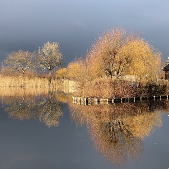 Winter, yellow willow, orange sun set, dark blue cloudy sky, all mirrored on melting ice. Reeuwijkse plassen, NL. #holland #mirror #reflection #willow #landscape #nature #water #naturephotography #wilg #sunset #reeuwijkslassen #reeuwijk