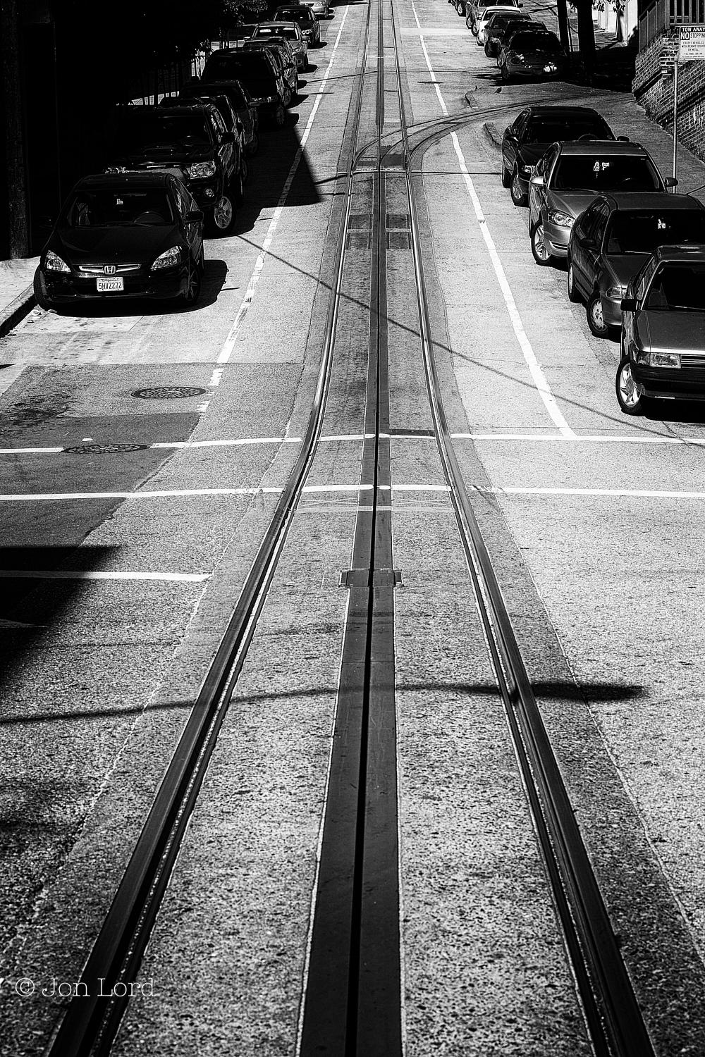 #traintracktuesday Washington Street (Details In The Alt Text) #AltText #NoAI #No2AI #photography #photo #potd #photooftheday #travel #sf #sfba #travelphotography #bnw #sanfrancisco #california #norcal #usa #BlackandWhite #landscape #us #trams #cityscape #landscapephotography #monochrome #street #leftcoast #blackandwhitephotography #tram #streetphotography #rail #tracks