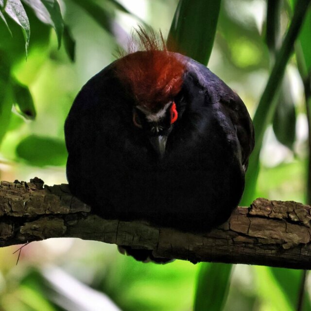 A ball of #crestedPartridge perching for the night at the #GrusonGewächshäuser, where they roam freely in some of the greenhouses. It almost made me jump and scream, when I was standing right next to it and heard some rustling in the greenery. I did NOT expect a chonky demon bird almost at eye level, just centimetres away. 😅 Here's how they look in daylight: https://pixelfed.social/p/meoralis/889604144093266659 #crestedWoodPartridge #roulRoul #redCrownedWoodPartridge #greenWoodQuail #greenWoodPartridge #crestedPartridges #partridge #quail #partridges #quails #Wachtel #Wachteln #Straußwachtel #RollulusRouloul #bird #birds #Vogel #birdPhotography #birdsOfMastodon #birdsOfFediverse #Birdsday #Birbsday
