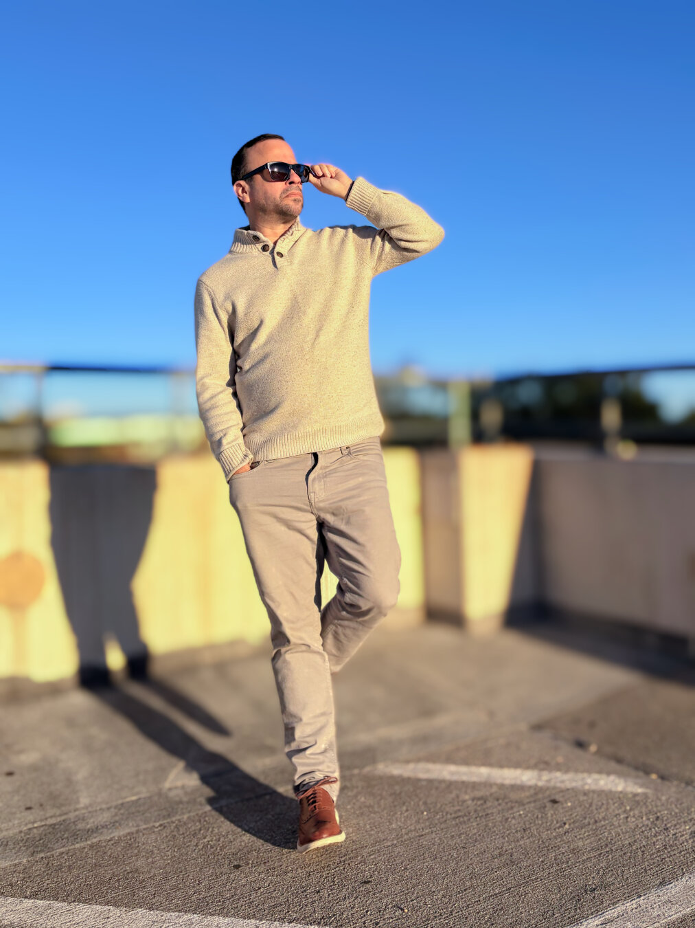SecureInStyle Today's #OOTD is cream and grey. Not cream and cream, nor grey and grey, as the pictures may allude to. Why does the sun have to be so yellow, anyway?