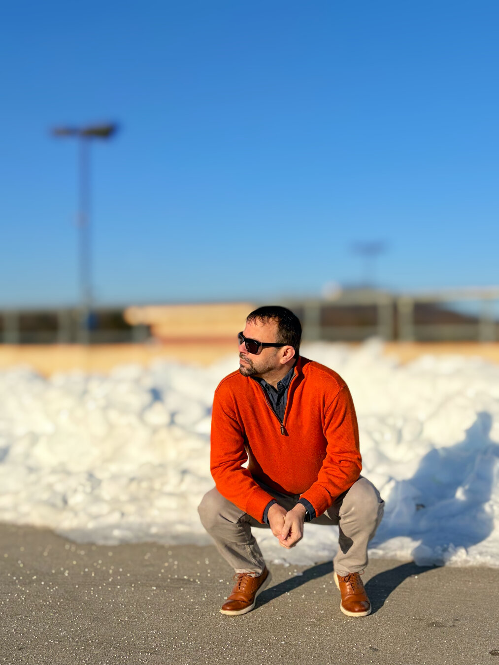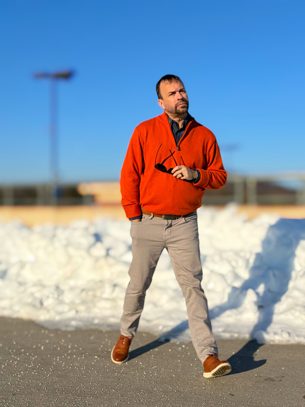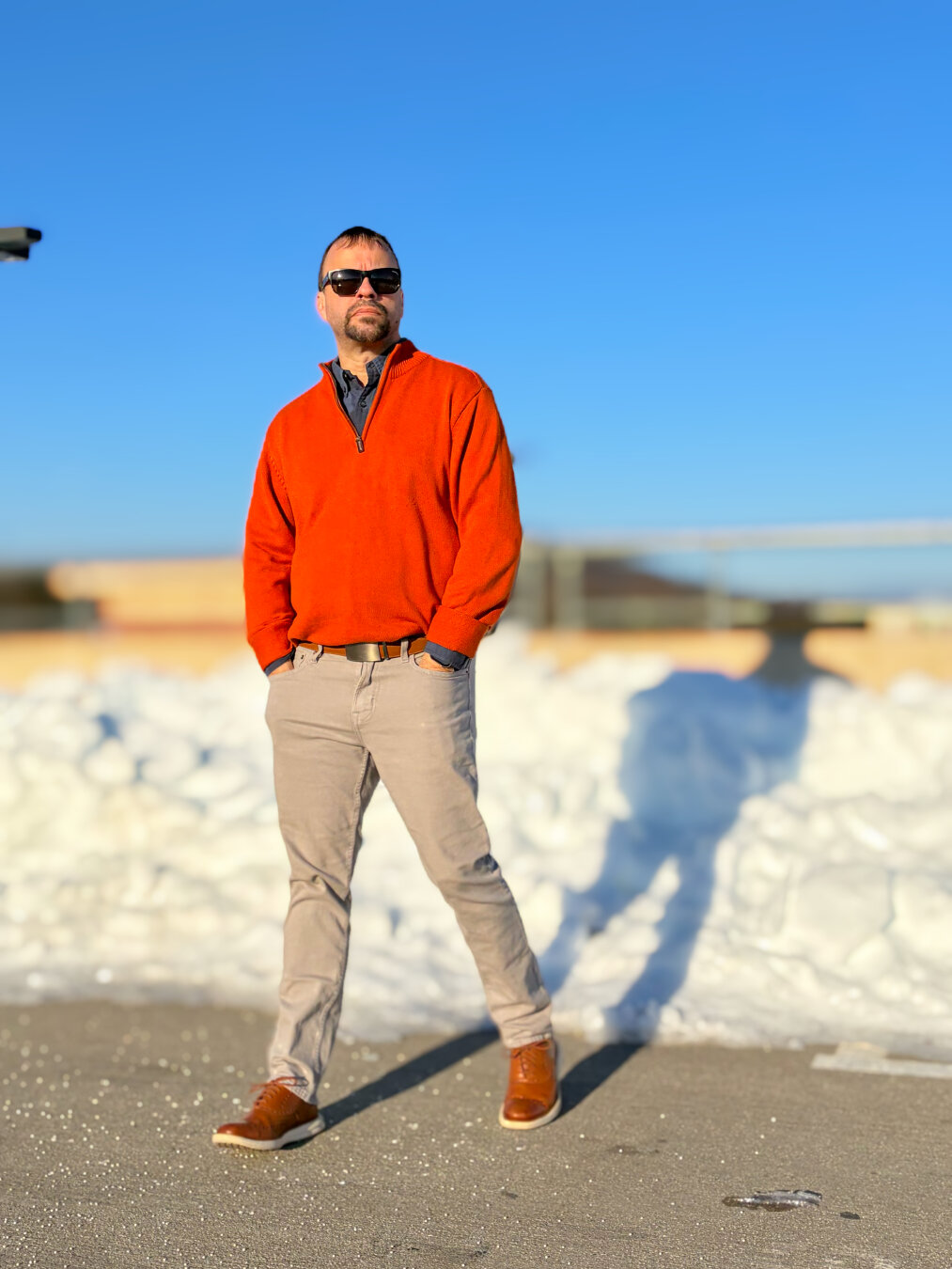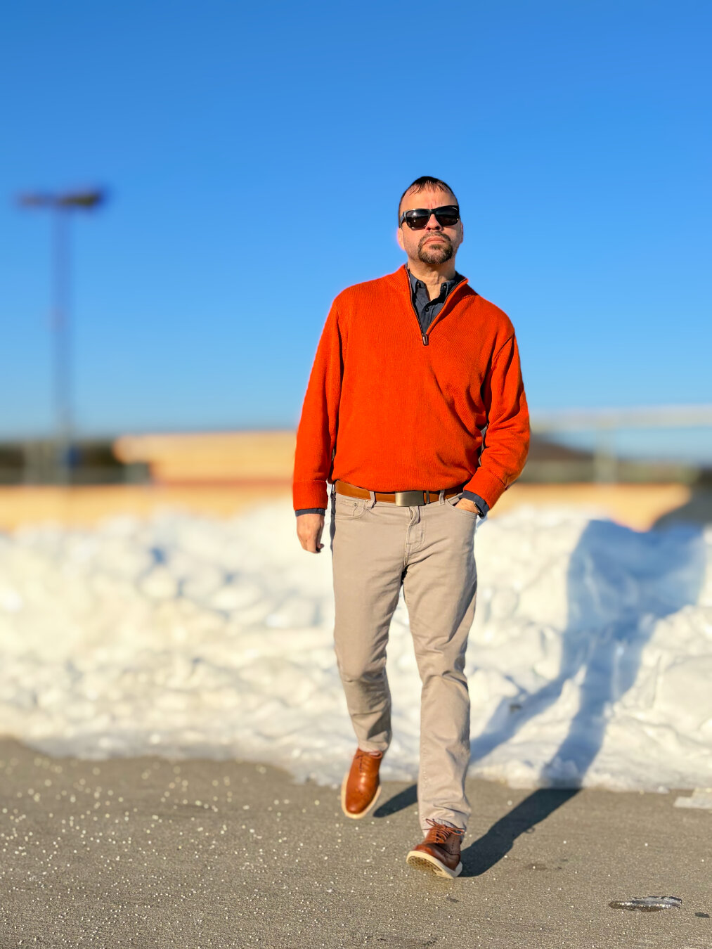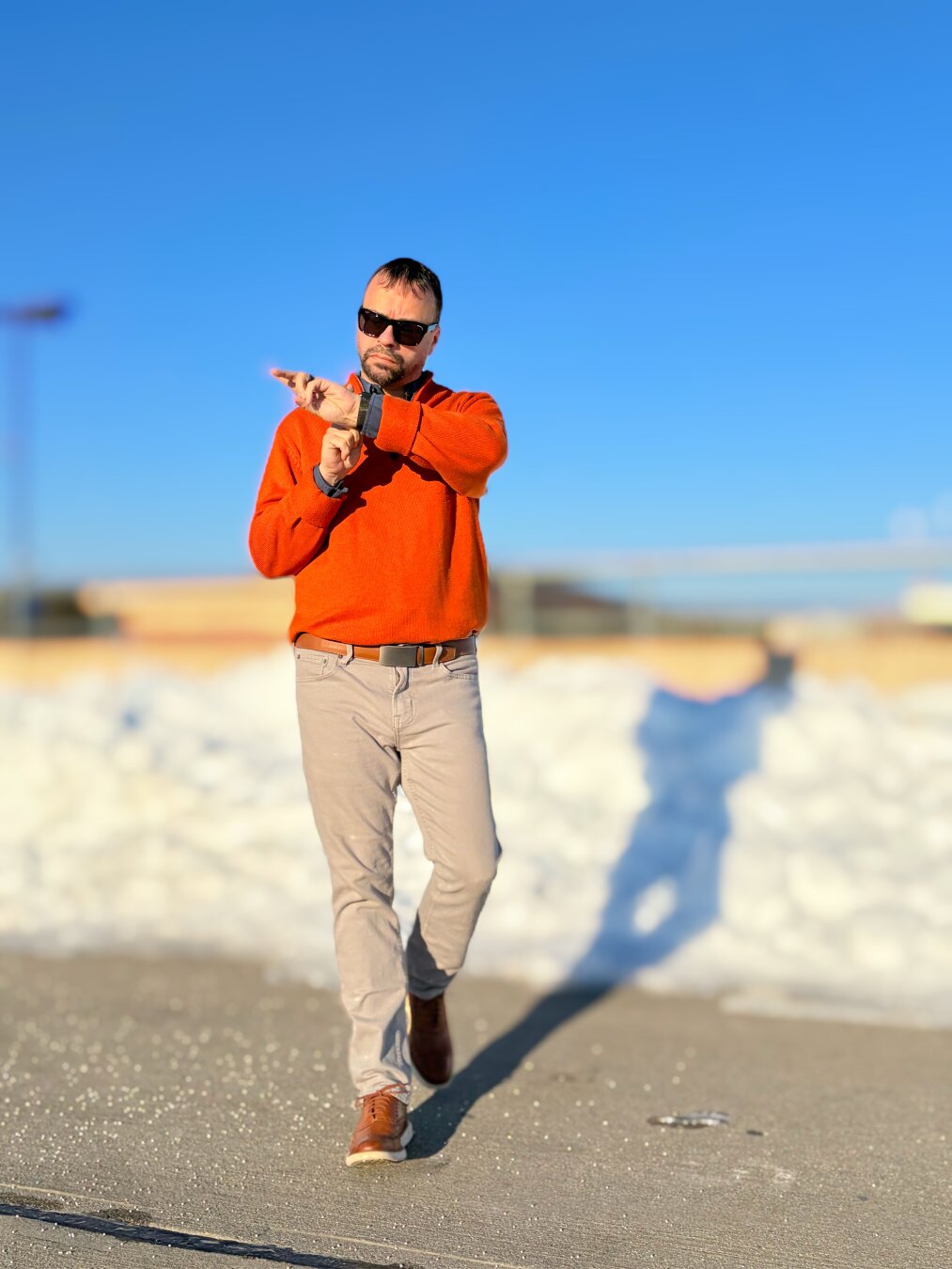 SecureInStyle Nope, snow still hasn’t vanished. *sigh* .. Also, I think this orange sweater is headed back to thrift. It’s so long and I had to TUCK IT IN. 😅 #OOTD