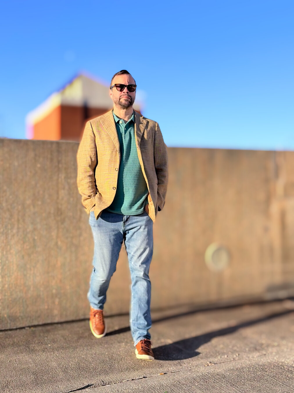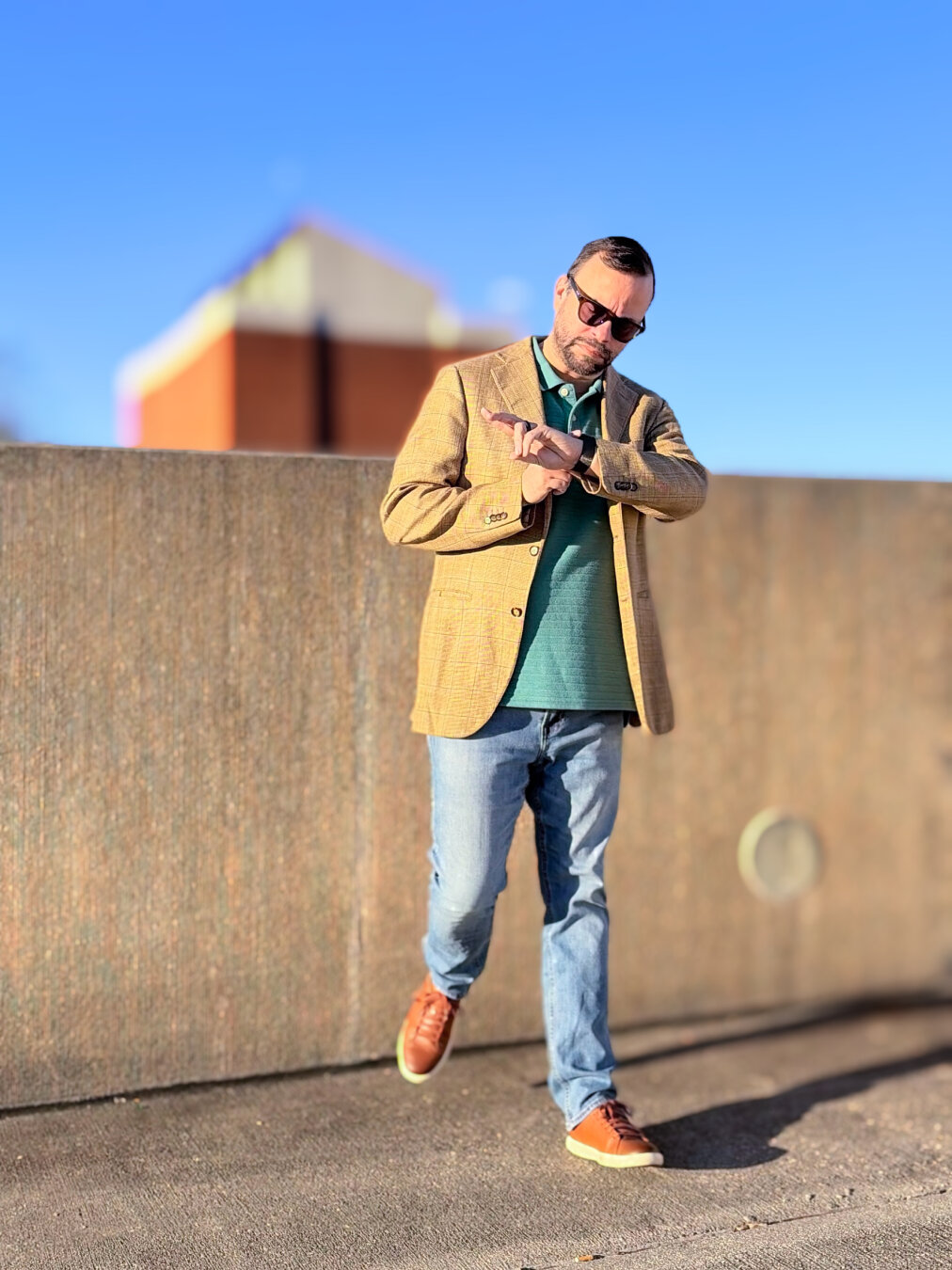 SecureInStyle Happy "first-day-I-can-walk-to-my-car-from-work-while-the-sun-is-still-up" day. ☀️ Changed the angle a bit today to try and decrease the shadows. I may keep this one. #OOTD