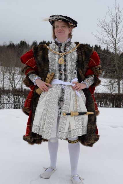 Sometimes I am not sure where my brain takes me, as was the thing when I discovered I wanted to recreate Henry 8ths famous outfit. Everything made and machine embroidered by me. Silk, velvet and fake fur. 3d printed dagger to match I have an idea for the next one.. a slightly more elaborate :p #historicalsewing #embroidery #royality #costume #søm #sying #tudor #ball #machineembroidery