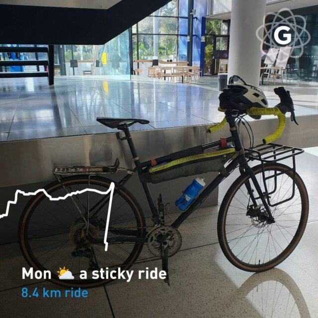 ajft Mon ⛅ a sticky ride Sticks and stones... and wind, flooding, wind, and mud ... and wind. Big storm last night, still windy on #mycommute #cycling up the creek today