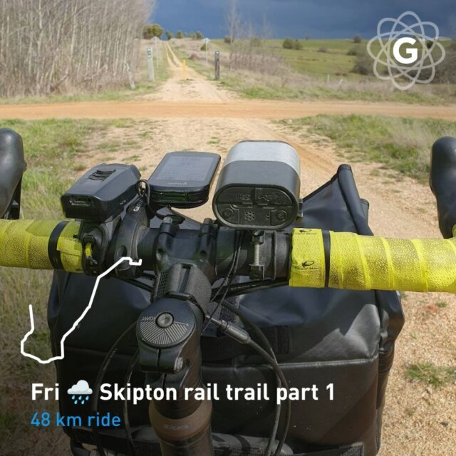 ajft Fri 🌧 Skipton rail trail part 1 Three day #cycling trip along the Ballarat-Skipton #railtrail, a bit wet and soft, some #magpies swooping, great #pub accommodation and food
