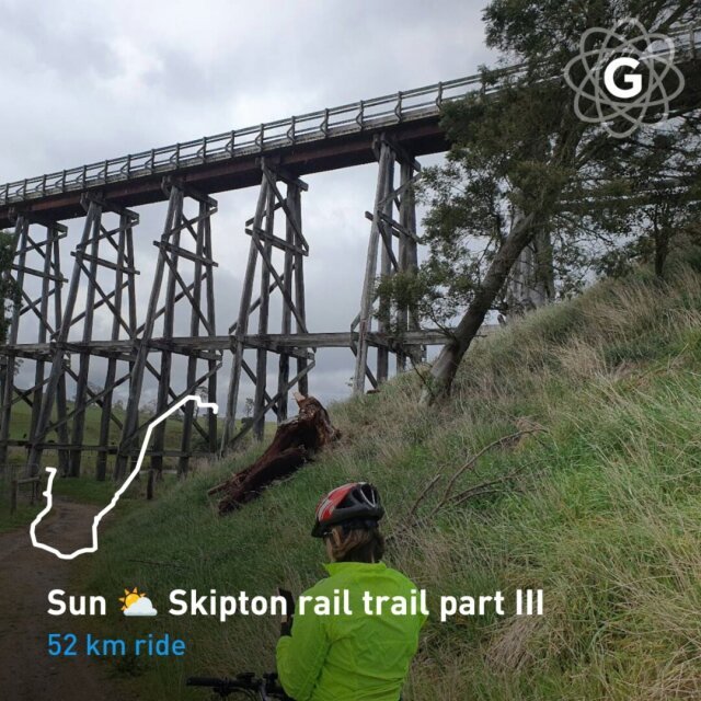 ajft Sun ⛅ Skipton rail trail part III Three day #cycling trip along the Ballarat-Skipton #railtrail, day three - Snake valley to Linton then back along the trail to Wendouree and catch the train home. A bit wet and soft, some #magpies swooping, great #pub accommodation and food