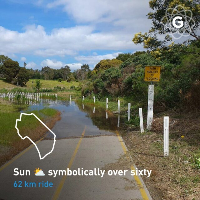 ajft Sun ⛅ symbolically over sixty 61km #cycling on Sunday with a fair headwind, plenty of flood debris, and some lovely gravel paths down to the bay. #laterfed 2024-10-20