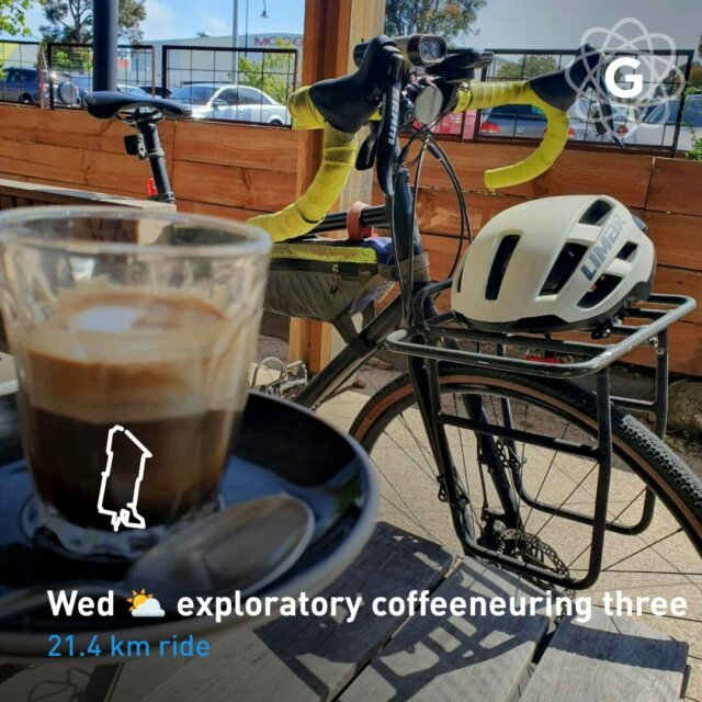 ajft Wed ⛅ exploratory coffeeneuring three Third #coffee of #coffeeneuring2024, a warm afternoon ride around the 'burbs, short macc. At Miss Mavis, Heatherton #cycling #coffeeneuring #laterfed 2024-10-23