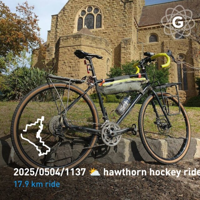 ajft 2025/0504/1137 ⛅ hawthorn hockey ride Out for a ride while kid's hockey is on, glorious autumn #cycling . It is #laterfed but catching up