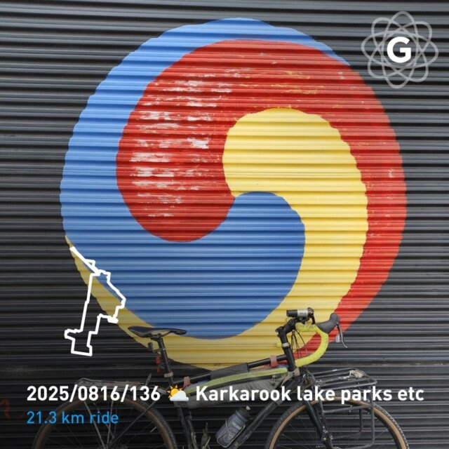 ajft 2025/0816/136 ⛅ Karkarook lake parks etc Weekend afternoon #cycling, down around the lake, the gravel tracks, a few parks, back home with a photo at the Korean community hub. #laterfed