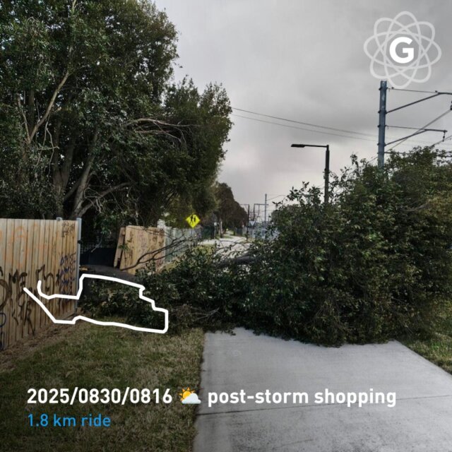 ajft 2025/0830/0816 ⛅ post-storm shopping #cycling up to the shops for the weekend bread after the overnight storm brought the bay tree down. #LaterFed