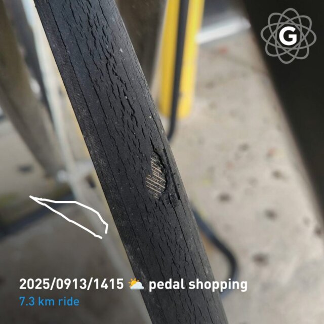 ajft 2025/0913/1415 ⛅ pedal shopping A quick bit of #cycling to three LBS for some pedals, along the way noticing I had a dead tyre on the #fixie. #laterfed
