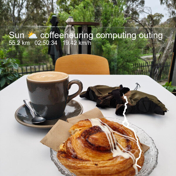 ajft 2025/1123/1008 ⛅ coffeeneuring computing outing One last #coffeeneuring bit of #cycling for 2025, off up north to see some vintage computers, taking the Anniversary Trail and Darebin Creek Trails there and back