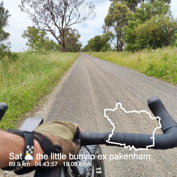 ajft 2025/1215/1001 ⛅ the little bunyip ex pakenham 90km of #gravelroad #cycling starting and ending at East Pakenham station; Gippsland flat farm roads to the hills of the Bunyip State Forest up to Gembrook