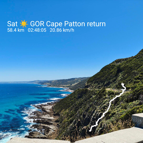 ajft 2025/1228/1342 ☀️ GOR Cape Patton return Enjoyable afternoon out and back #cycling along the GOR. Usual idiot close pass drivers and drone-fliers, great views, breeze, clear skies