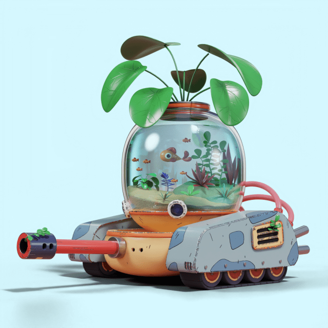 #Blender3D #3D #3DArt #SubstancePainter #Art #Stylized #Cartoony #Pun #Fish #Tank #Colorful #CarolineChoi