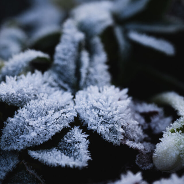 It has been a couple of properly cold days, this morning was around -10°C. A picture of plants in a pot in a public square #frost #winter #cold