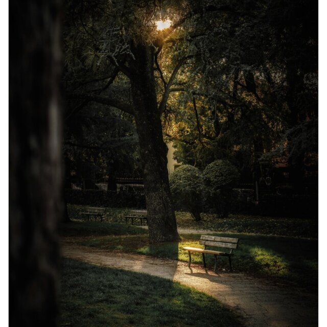 #photography #amateurphotography #leaves #autumn #trees #forest #park #bench #sunlight #light #shadow #nature #urbannature #urbangarden #green #dark #dreamy #peaceful #italia #italy #bologna #photo #canon #canonphotography