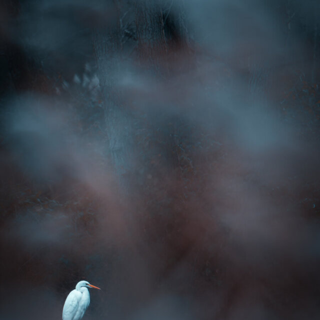 Great Egret in Woodland Shadows